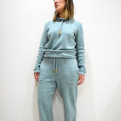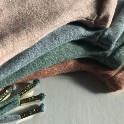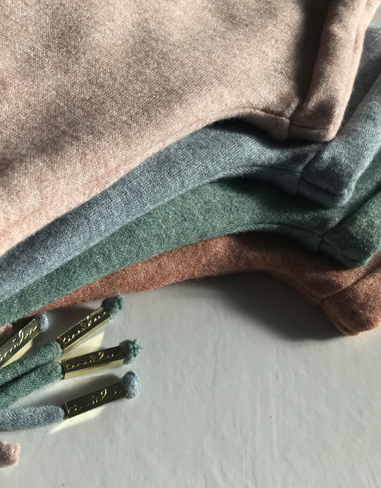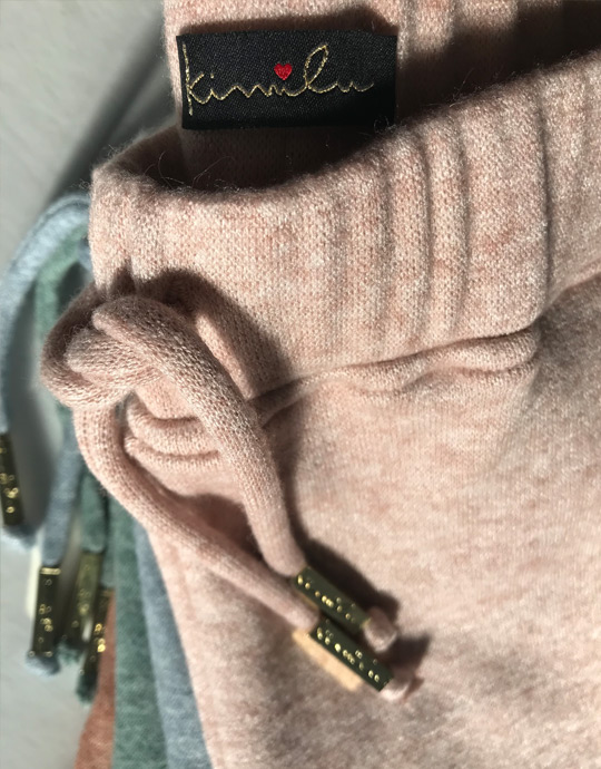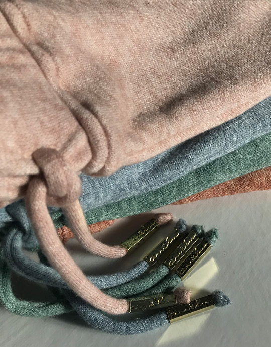 - Cordões decorativos confecionados com a mesma malha da peça;